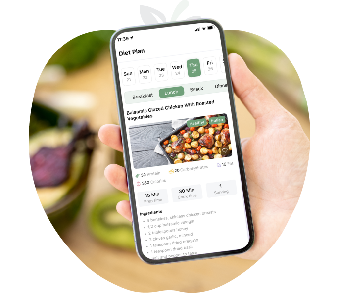 - Generates weekly meal plans based on your dietary profile (vegan, Mediterranean, low-carb, etc.).